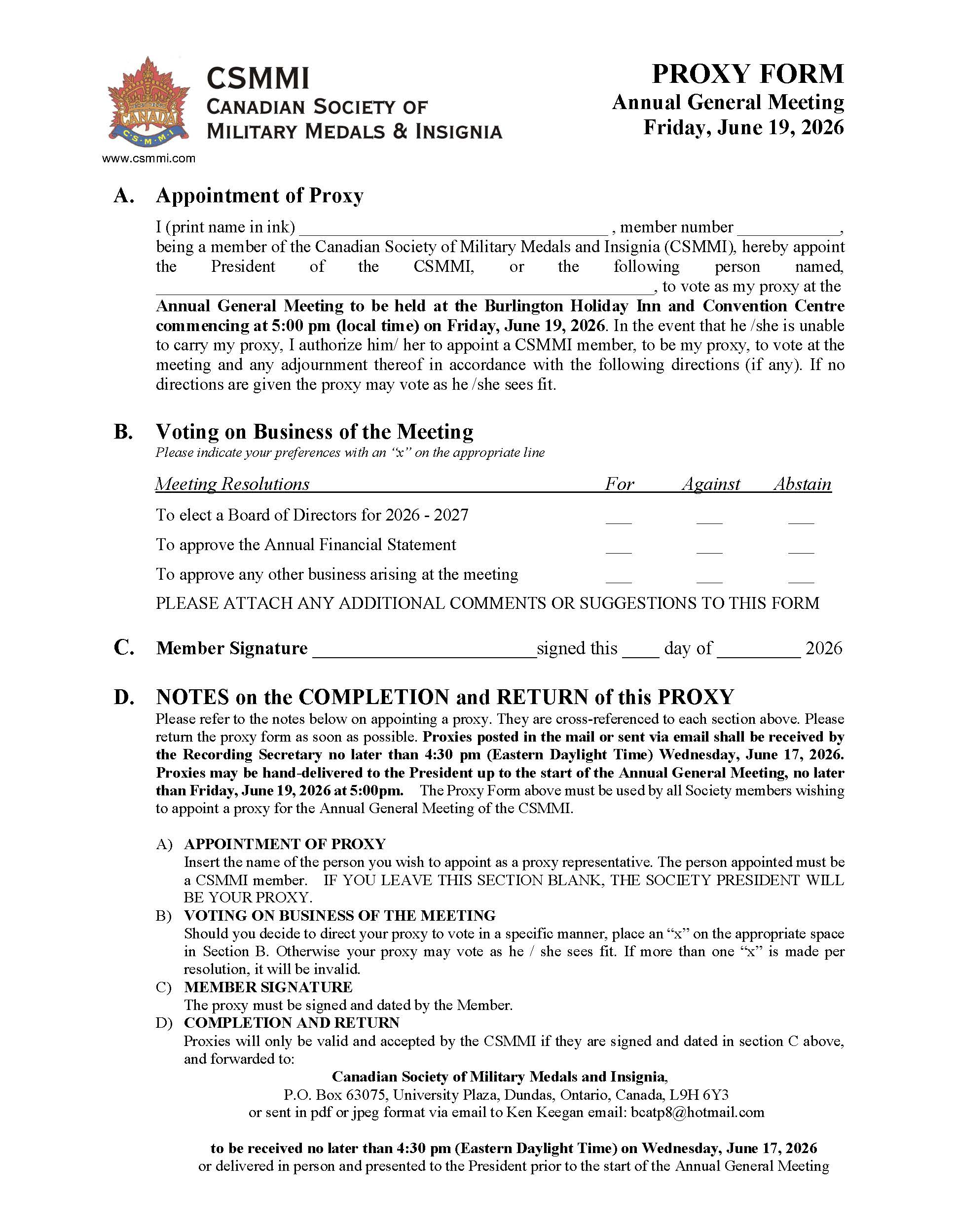 6:00 p.m. - 7:00 p.m. ........ CSMMI Social (following the AGM)