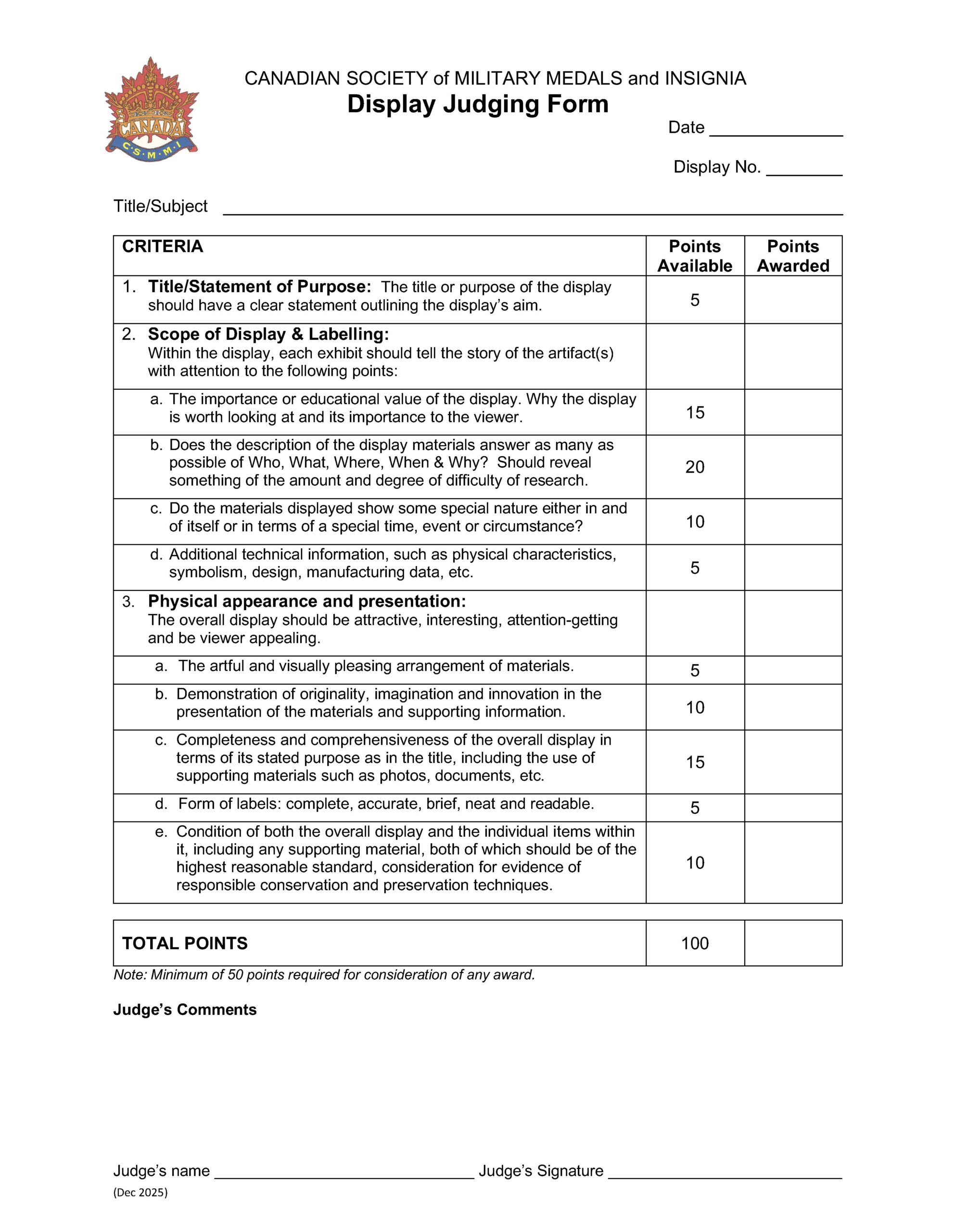 2:00 p.m. .......................... Judging of displays commence (see judging criteria form)
