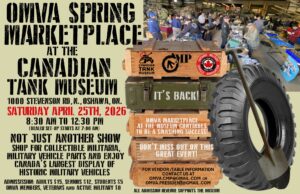 25th Ontario Military Vehicle Association (OMVA) Spring Marketplace. Canadian Tank Museum, 1000 Stevenson Road North, Oshawa, ON. A marketplace set-up amongst Canada's largest collection of military vehicles. www.omva.ca & www.ontrmuseum.ca.